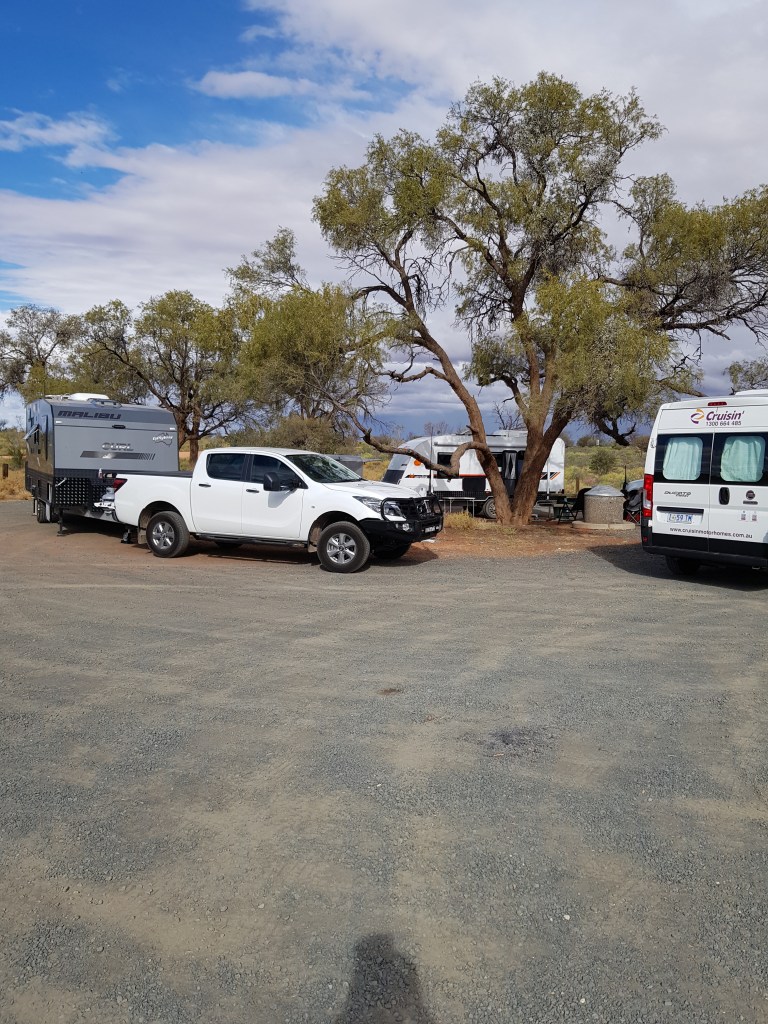 8th May. We stayed the night at the Marryat Rest area and decided that the only tree was for our use only. The B-Triple trucks were pretty noisy but we got a few good photos of them lit up like Christmas trees